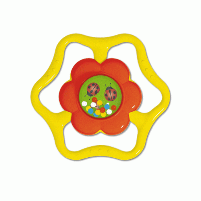 Оригинальная погремушка-прорезыватель «Солнышко» будет любимой среди самых первых игрушек вашего малыша. Она станет не только отличным помощником в период появления зубов, но и прекрасной игрушкой во время веселых игр маленьких непосед. Погремушка выполнена в форме яркого цветочка, окруженного мягкими лучами солнышка. С одной стороны цветочка находятся разноцветные шарики и яркая картинка, а с другой - шарики и зеркальце. При движении шарики пересыпаются и издают «струящийся» звук. Ребенку будет очень удобно держать погремушку, так как её форма разработана специально для маленьких ручек. Погремушка-прорезыватель выполнена из высококачественных материалов и абсолютно безопасна для детей. Для детей от 0 мес. Развивает остроту зрения и слуха, цветовосприятие, тактильную чувствительность, мелкую моторику. Формирует зрительно-моторную и зрительно-слуховую координацию. Помогает во время прорезывания зубов. Сертификаты Информация для дилера Материал: полистирол, силикон Упаковка: ручка картонная,