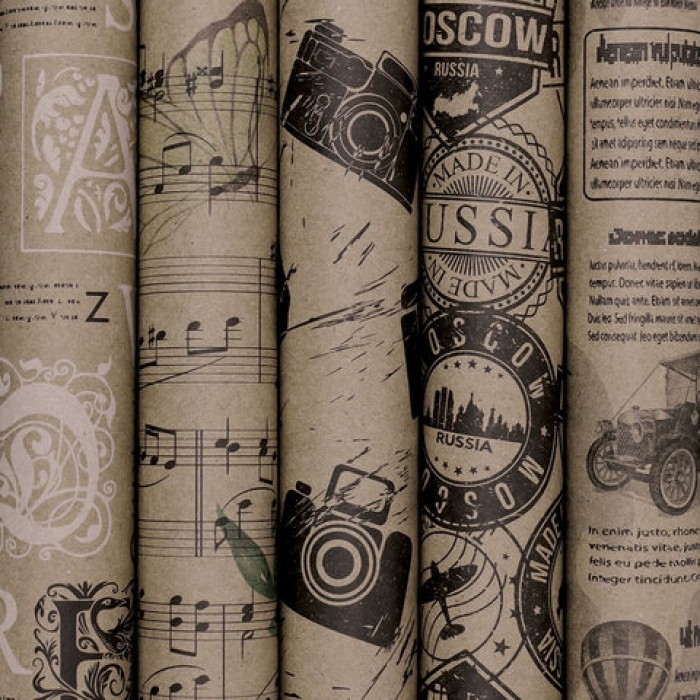 Бумага упаковочная крафт 70х100 см ЗОЛОТАЯ СКАЗКА "Kraft Casual", 5 дизайнов, 80 г/м2, 591597
