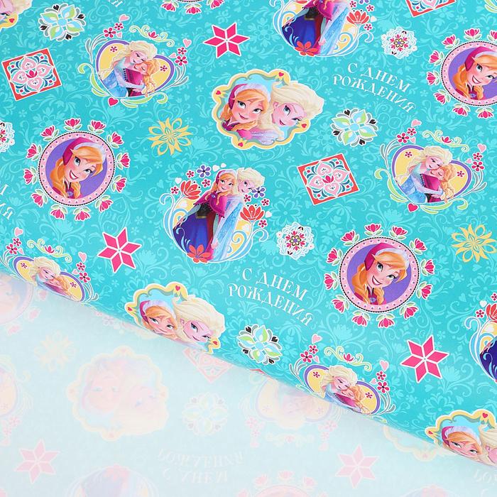 Бумага упаковочная глянцевая "С днем рождения", Холодное сердце, 70 х100 см 1302008