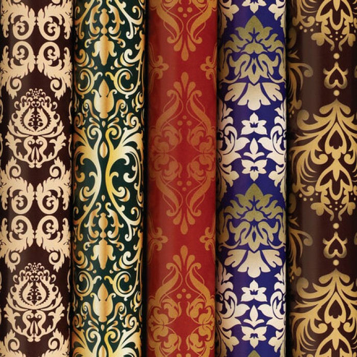 Бумага упаковочная мелованная 70х100 см ЗОЛОТАЯ СКАЗКА "Damask Luxury", 5 дизайнов, 70 г/м2, 591590