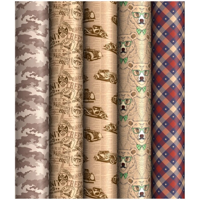 Упаковочная бумага крафт 70*100см, ArtSpace "Мужской стиль", 1 лист, 70г/м2, ассорти 5 дизайнов Спейс 288049