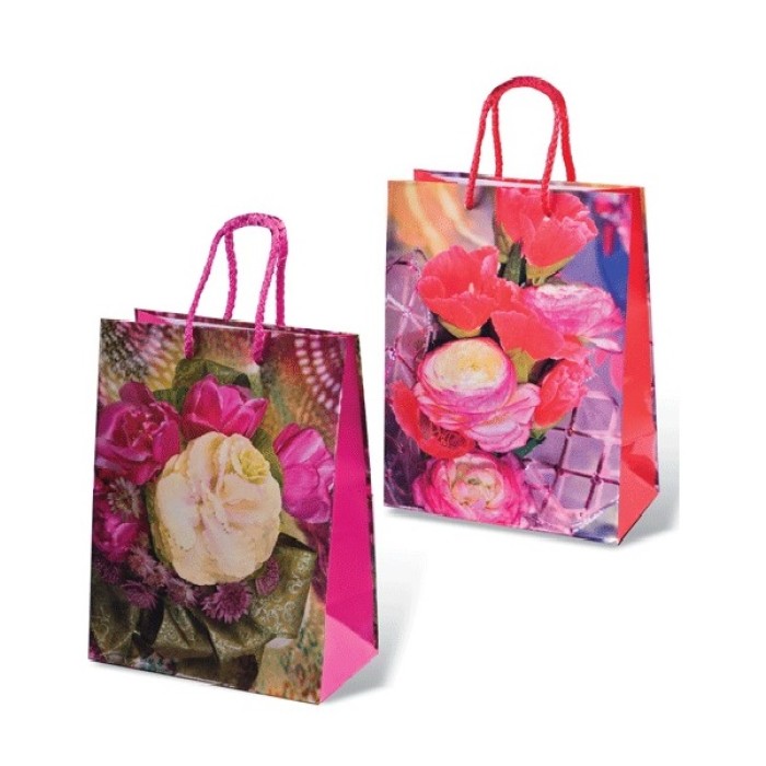 Пакет подарочный ламинированный, 18x23x10 см, "Цветы", ассорти