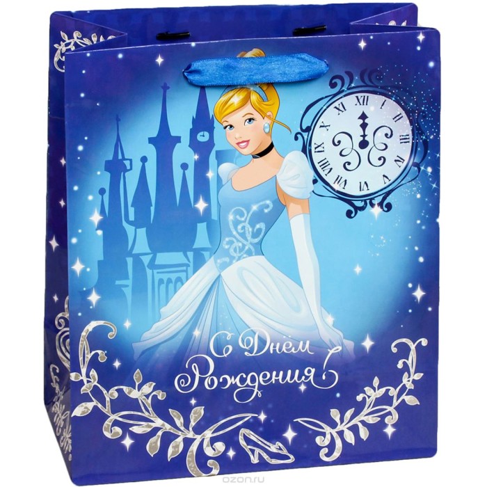 Пакет ламинат вертикальный "С Днем Рождения!", Принцесса: Золушка, 31х 40 х11 см 1931087