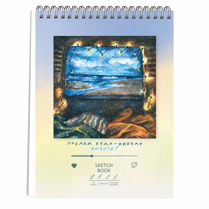 Скетчбук А4 (210х286), 40л. Евроспираль. Твердая обложка 7БЦ, матовая ламинация. Бумага белый офсет 140г/м2. "Мечты (Эксклюзив)"