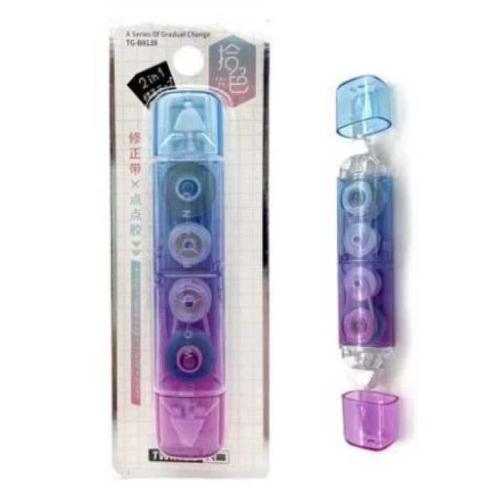 Штрих - Лента + Клей 5мм х 4м / 3 м TG-B8138 "Двусторонний" прозрачный корпус 10см, на блистере 321539