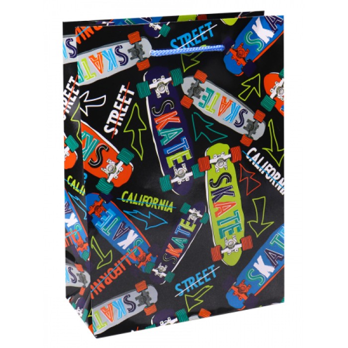 Optima Пакет подарочный с глянцевой ламинацией 26,4x32,7x8 см (L) Скейтборды, 128 г ПКП-3600
