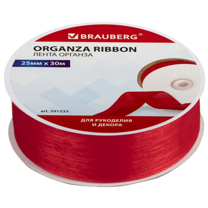 Лента органза ширина 25 мм, длина 30 м, красная, BRAUBERG, 591533