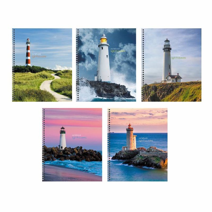 Тетрадь 60л., А5, клетка, Канц-Эксмо "Маяки". гребень, мелованный картон