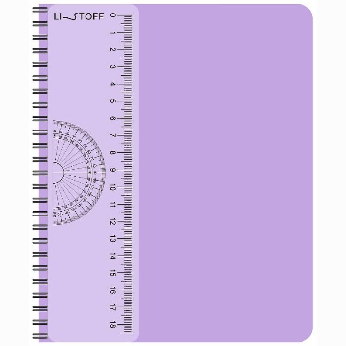 Тетрадь А5- 80л. Гребень. Клетка. Обложка: цветной пластик. Бумага белый офсет 60г/м2. Скругл.углы. Съемная линейка из прозрачного пластика. "Лавандовая тетрадь"