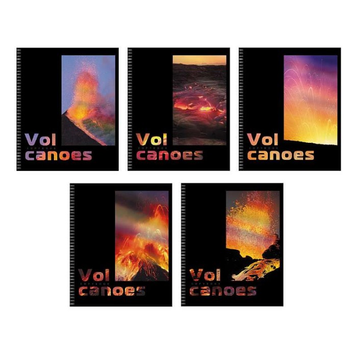 Тетрадь 96л., А5, клетка, Канц-Эксмо "Вулканы", гребень, карт. печ. по металл. пленке, голография, 5 дизайнов