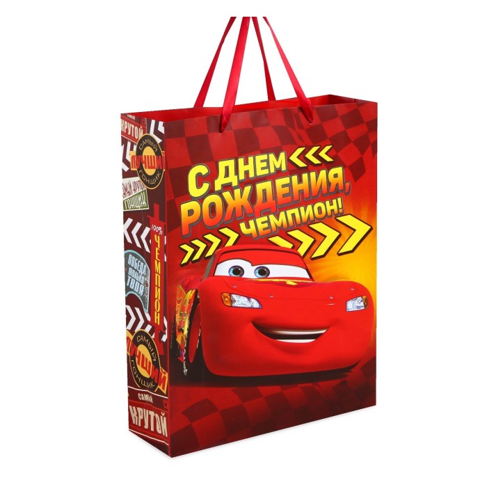 Пакет ламинат вертикальный "С Днем рождения, чемпион!", Тачки, 23 х27 х11.5 см 2019715