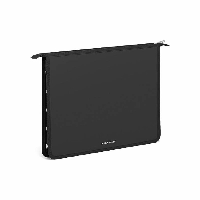 Папка для тетр. на молнии пласт. с текстильной вставкой и органайзером для ручек ErichKrause® Dots in Black, A4 55416