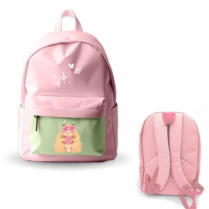 Рюкзак школьный (40х30х12 см) для средних и старших классов. Ткань Oxford. Цветная печать. Одно отделение на молнии. Накладной карман на молнии. Хомячок РК0340