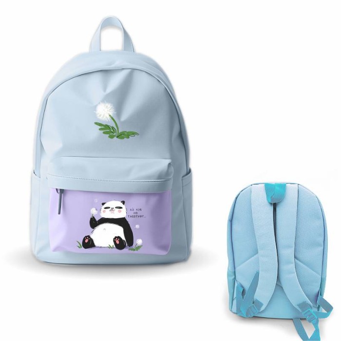 Рюкзак школьный (40х30х12 см) для средних и старших классов. Ткань Oxford. Цветная печать. Одно отделение на молнии. Накладной карман на молнии. Панда РК0339