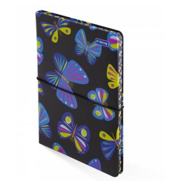 Записная книжка, А5, Yalong, 7БЦ, матовая ламинация, поролон, на резинке, клетка, цветной срез, 80 л., "Бабочки черном", ассорти