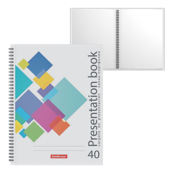 Папка-портфолио формата А4 из высококачественного пластика c картонной вставкой. Предназначена для хранения и просмотра тематических материалов. Папка содержит 40 прозрачных листов-карманов, надежно скрепленных двойной евроспиралью. Папка вмещает до 80 бумажных листов. Размер 235х305х5мм, толщина карманов - 40мкм. Код и баркод на каждой единице товара.