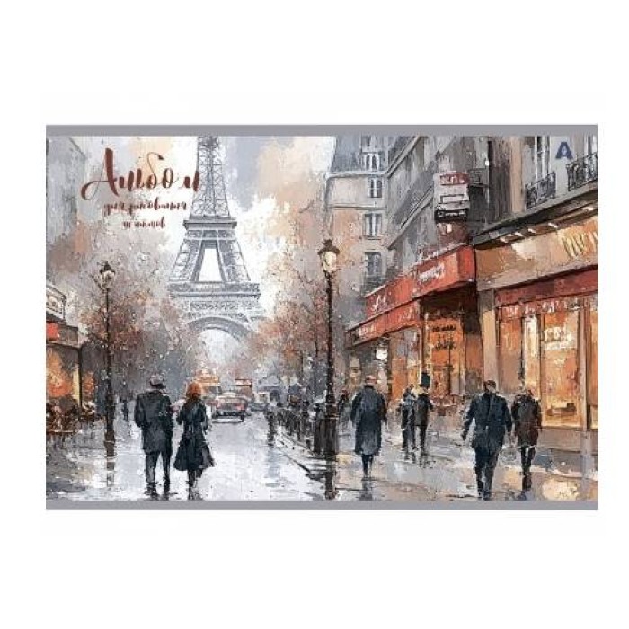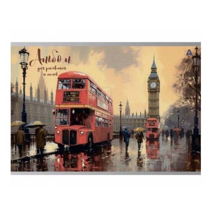 Альбом для рисования А4 40л., Alingar, на скрепке, мелованный картон (стандарт), 100 г/м2, "Акварельный город"