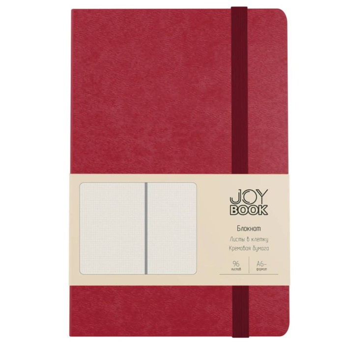 Блокнот А6- формат серии JOY BOOK от компании “Эксмо” не только красив, но и практичен. Твердая обложка из экокожи в трендовом цвете снабжена фиксирующей резинкой, бумага имеет кремовый оттенок, а в конце блока спрятан кармашек для важных мелочей вроде визиток, билетов, записок. Благодаря компактному размеру, его всегда можно взять с собой. Листаж 96 листаж, 7Б, в клетку.