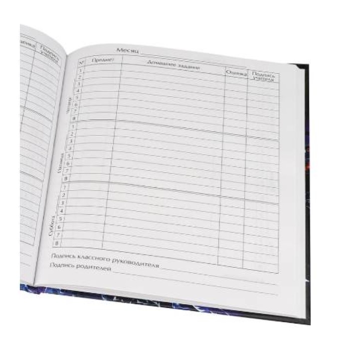 Школьный дневник — основной атрибут каждого ученика, выполняющий функции журнала регистрации оценок и домашних заданий, замечаний по поведению и прилежанию, является средством общения учителей и родителей, а также показателем успеваемости учащихся. Внутренний блок: 48 листов. Обработка обложки: глянцевая ламинация.