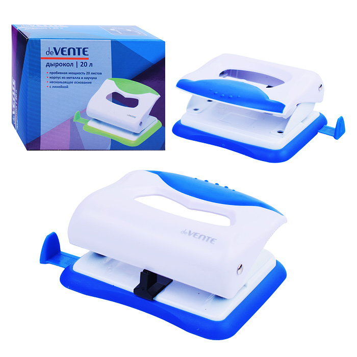 - Дырокол "Color" (20 листов) пластиковый с каучуковой вставкой, с линейкой, в картонной коробке, ассорти 4020805