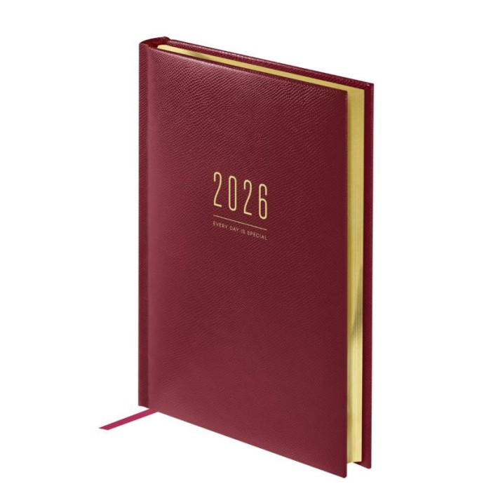 Датированный ежедневник на 2026 год BG серии "Dallas" помогает создать персонализированную систему планирования, которая соответствует потребностям и стилю жизни владельца. Твёрдая обложка из темно-красной экокожи с поролоновой прослойкой выглядит презентабельно и понравится любителям классики. Золотой фольгированный срез красиво подчеркивает насыщенный бордовый цвет обложки.