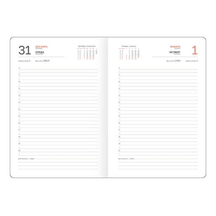 Перфорированные уголки и закладка-ляссе обеспечат комфорт и удобство при использовании. В ежедневнике предусмотрена справочная информация, ежемесячный планер, календарь и другие полезные сведения. Подходит под персонализацию. Индивидуальная упаковка в термоусадочную пленку.
