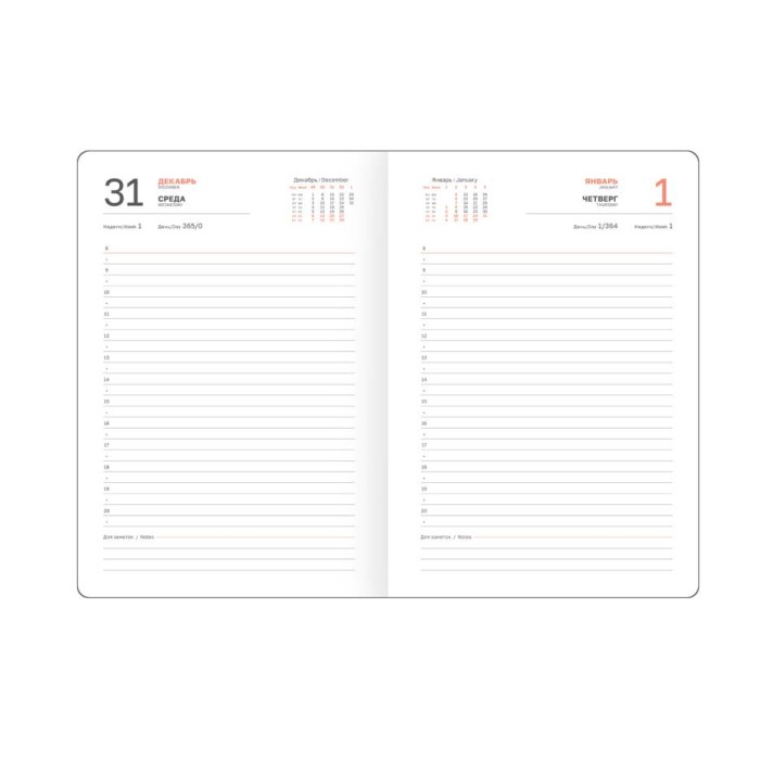 Перфорированные уголки и закладка-ляссе обеспечат комфорт и удобство при использовании. В ежедневнике предусмотрена справочная информация, ежемесячный планер, календарь и другие полезные сведения. Подходит под персонализацию. Индивидуальная упаковка в термоусадочную пленку.
