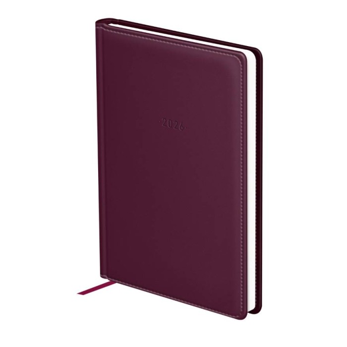 Элегантный датированный ежедневник на 2026 год BG формата А5 серии серии Winner в твёрдой обложке цвета бургунди, выполненной из высококачественной экокожи с гладкой матовой поверхностью и поролоновой прослойкой. Внутренний блок состоит из 176 листов белой офсетной бумаги плотностью 70 г/м2 с печатью в 2 краски. Датированный ежедневник представлен в размере 145*205 мм.