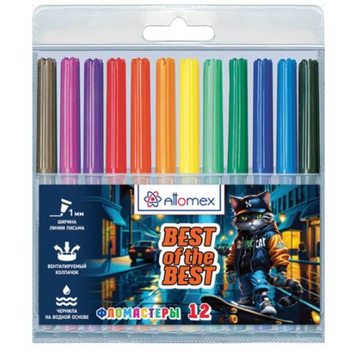 Фломастеры 12цв "Best Of The Best" смываемые вентилируемый колпачок ATTOMEX
