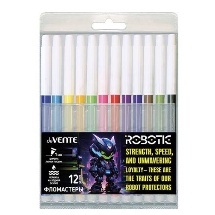 Фломастеры 12цв "Robotic" смываемые невентилируемый колпачок пластиковая упаковка е/п DEVENTE