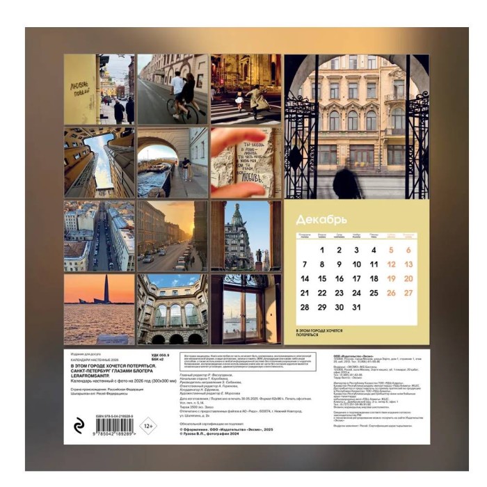 Гузова В.П. В этом городе хочется потеряться. Санкт-Петербург глазами блогера @lerafromsaintp. Календарь настенный с фото на 2026 год (300х300 мм) 978-5-04-218928-9