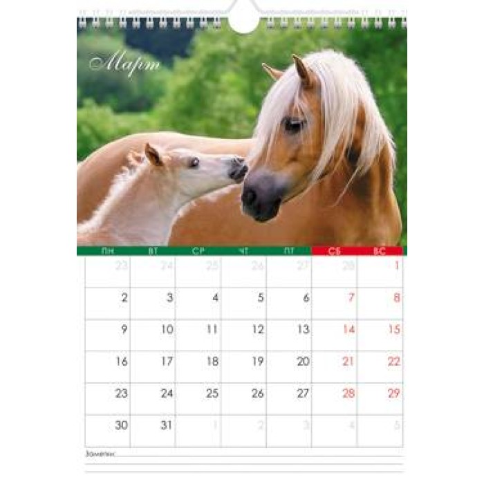 Календарь настенный перекидной 22х30 МИНИ на 2026г бум. Мелованная на гребне с ригелем с НАКЛЕЙКАМИ-Год Лошади- в инд.упак.с европодвесом