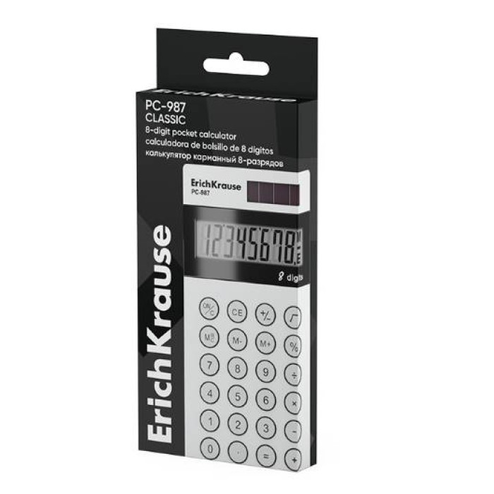 Калькулятор карманный 8-разрядов ErichKrause PC-987 Classic, белый 1шт 62009
