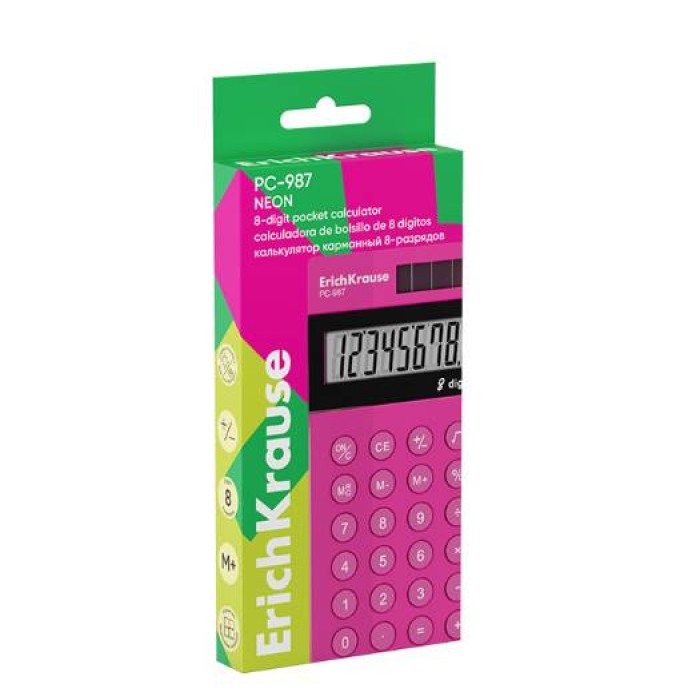 Калькулятор карманный 8-разрядов ErichKrause PC-987 Neon, розовый 1шт 62012
