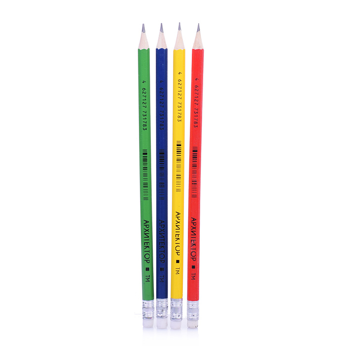 Карандаш чернографитный "Архитектор" диаметр грифеля 2 мм, шестигранный, с ластиком, заточенный, лак 5032711