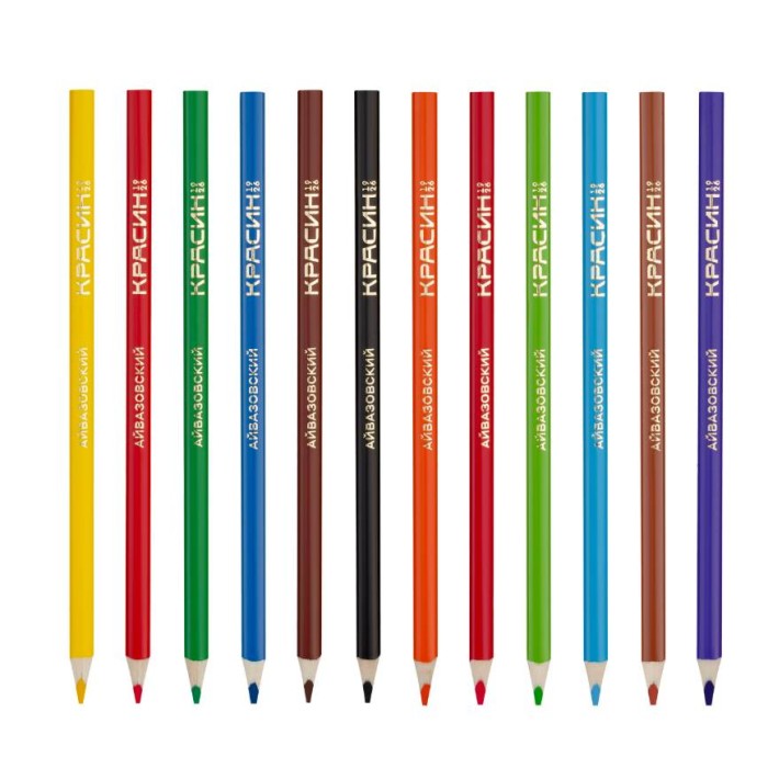 Акварельные карандаши «Красин» серии «Айвазовский» – отличный инструмент для развития творческих способностей и фантазии детей и взрослых. Они позволяют достичь эффекта акварельных красок в работе. В наборе 12 цветов: красный, синий, жёлтый, зелёный, чёрный, коричневый, голубой, фиолетовый, оранжевый, салатовый, светло-коричневый, розовый.