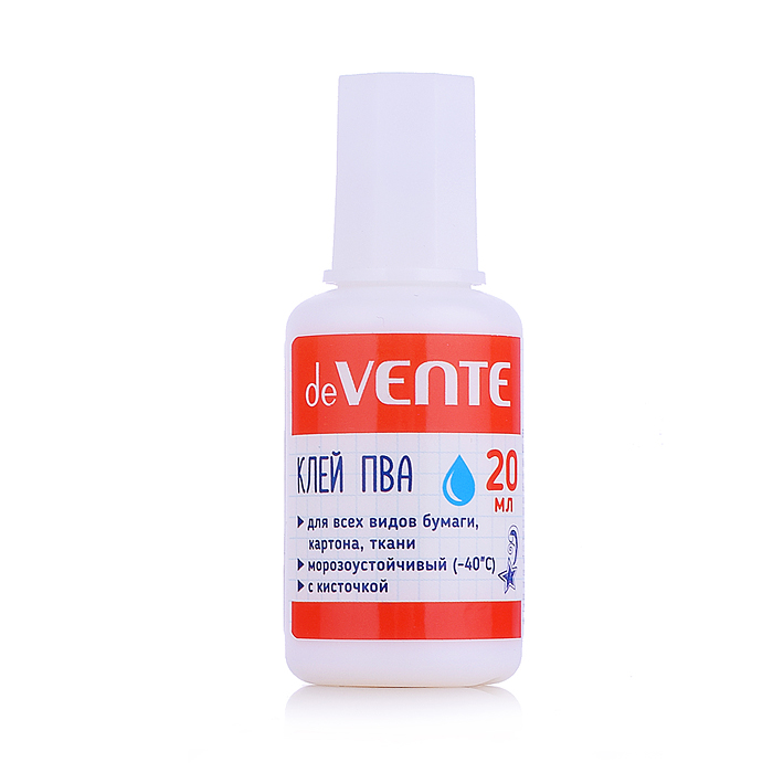 Клей ПВА "deVENTE. School" морозоустойчивый (до -40°C) 20 г в пластиковой бутылочке с кисточкой, в пластиковом поддоне 4041401