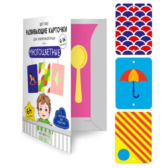 Яркие и красочные карточки для новорожденных – идеальный способ познакомить малыша с миром красок! 32 двусторонних карточки формата А6 с изображениями различных предметов в ярких цветах помогут ребенку распознавать основные цвета, развивать внимание, память, остроту зрения, координацию и фокусировать взгляд. Изготовлены из прочного мелованного картона с закругленными уголками для безопасности малыша. Удобная папка для хранения карточек. Погружайтесь в мир красок вместе с развивающими карточками для детей!