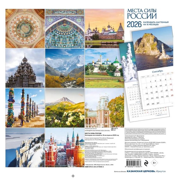 Места силы России. Календарь настенный на 16 месяцев на 2026 год (300х300 мм) 978-5-04-217646-3