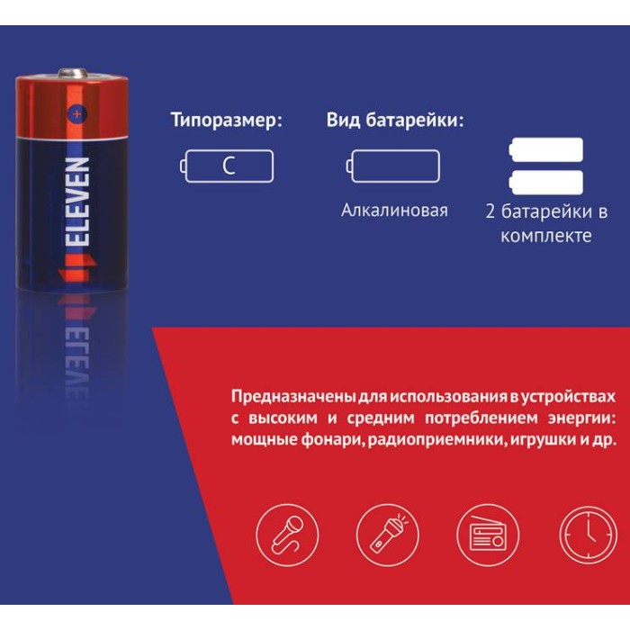 Набор батареек 2шт Eleven C (LR14) алкалиновая, BC2 301750