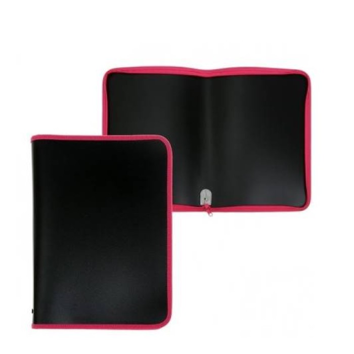 Папка 1 отделение, А4 325х230х25 мм, Пчелка, пластик, без дизайна, молния вокруг, "Черная/Малиновая" ПМ-А4-11