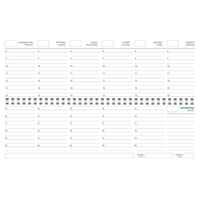 Настольный недатированный планинг Listoff — это горизонтально ориентированный еженедельник на евроспирали. Внутренний блок: 56 листов, бумага 70 г/кв.м. Дополнительные разделы: личные данные, заметки. Вся необходимая информация находится под рукой: все дни недели расположены на одной странице, а это значит, что все ваши планы и записи находятся всегда перед глазами.