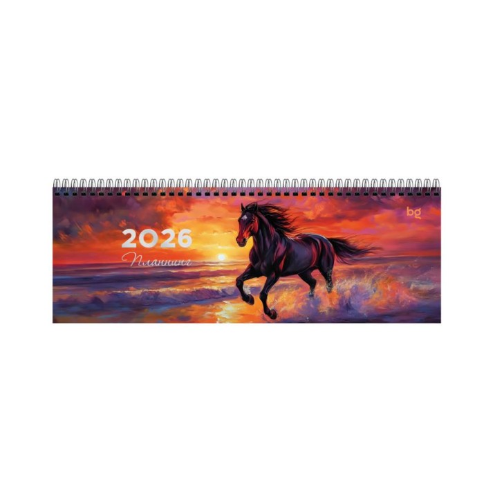Датированный планинг на 2026 год BG "Символ года" – надёжный и стильный инструмент, который поможет спланировать и организовывать время. Изделие состоит из 64 листов офсетной бумаги плотностью 65 г/м2 и имеет размер 285*100 мм. Печать блока в 1 краску.
