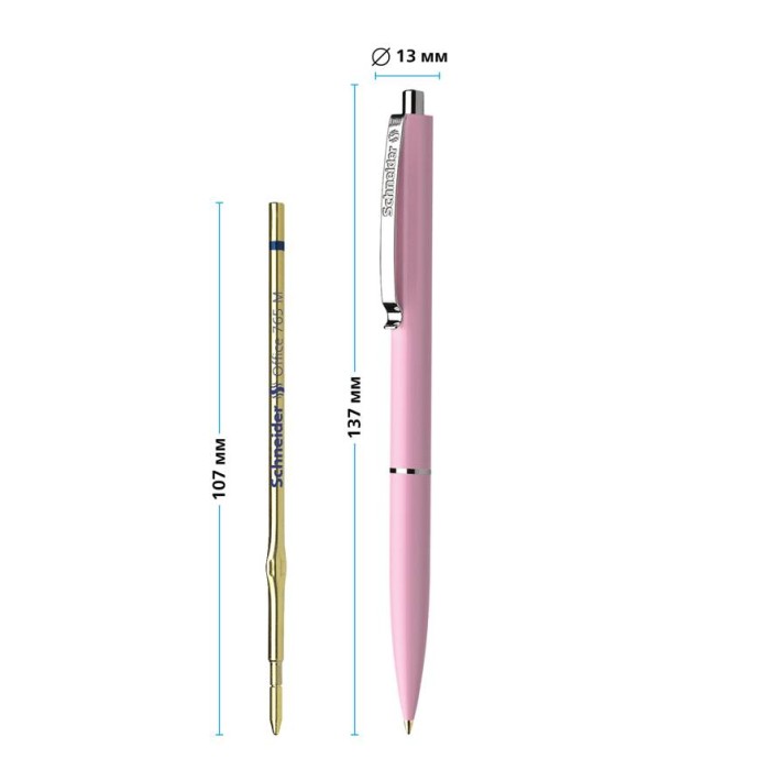Изящная автоматическая шариковая ручка с прочным металлическим клипом. Длина непрерывной линии - до 2 000 метров. Быстросохнущие, свето- и водоустойчивые чернила соответствуют международному стандарту качества ISO 12757-2 и отлично подходят для заполнения и подписи документов. Для замены подходят стержни Schneider Office 765 и Express 775.