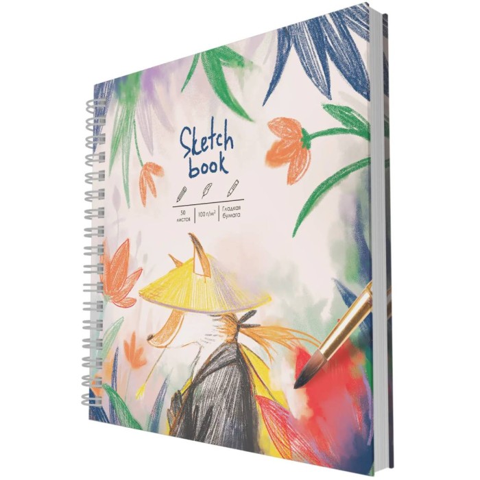 Скетчбук listoff квадратного формата (165х165 мм) станет удобным инструментом для обладателей творческих талантов. Твердая 7бц обложка с разнообразными красочными дизайнами послужит источником вдохновения для новых шедевров. Внутренний блок состоит из 50 листов бумаги плотностью 100г/м2, которая подходит для ежедневных зарисовок карандашами, линерами, ручками, не спиртовыми маркерами, а также — для коллажирования. А крепление евроспираль позволяет без повреждения рисунка оторвать нужный лист.