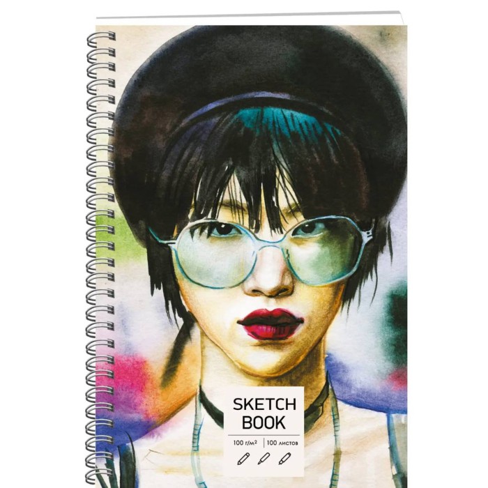 Яркий скетчбук с твердой обложкой формата А5, содержит 100 листов. Внутренний блок из гладкой бумаги плотностью 100г на м2, подходит для рисования карандашами, линерами, ручками, не спиртовыми маркерами.Отличный вариант для начинающих художественных талантов. Крепление по длинной стороне евроспираль, благодаря которой удобно переворачивать и при необходимости вынимать листы, а жесткая подложка позволит рисовать в любом месте, где Вас посетит муза.