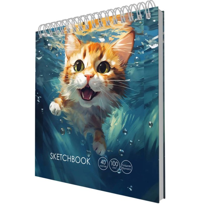 Скетчбук А6+ 40л "Довольный котик" КанцЭксмо ТС6405441