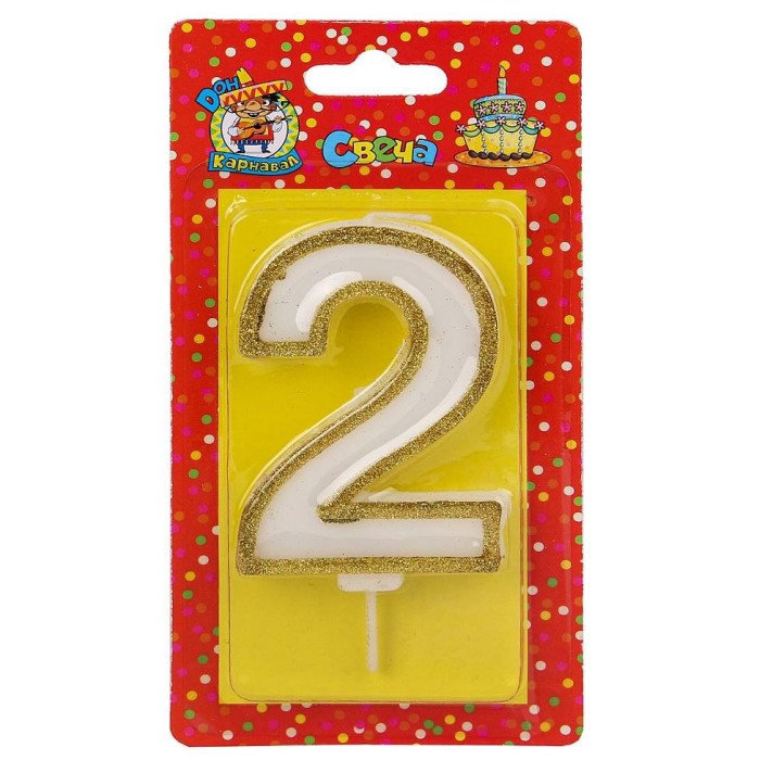 Свеча для торта с золотой окантовкой (глиттер) Цифра 2 С-5946