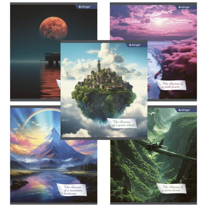 Тетрадь 36 л., А5, клетка, Alingar "Необыкновенные пейзажи", скрепка, офсет, мелованный картон (стандарт), е т/у AL11486