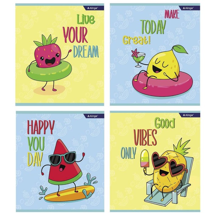 Тетрадь 36л., А5, клетка, Alingar "Crazy fruits", скрепка, мелованный картон (стандарт) , блок офсет, 4 дизайна в пленке т/у AL10357